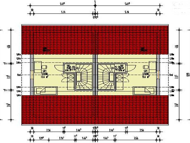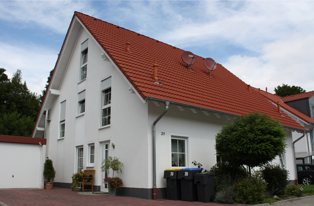 sind 2-fach gestrichen. Die Dacheindeckung erfolgt mit roten
